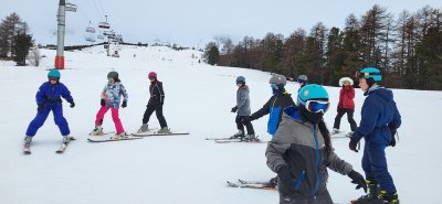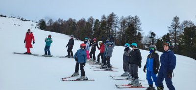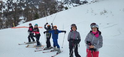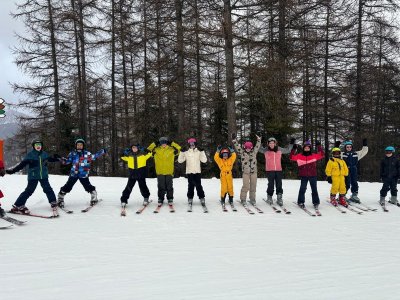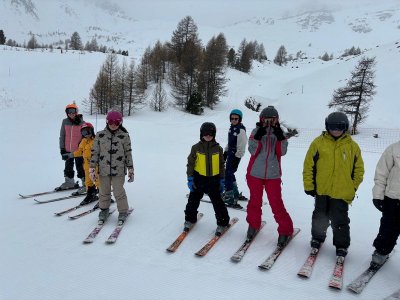 Pendant les cours de ski nous avons fait des petits exercices ( dérapages, pas tournant,...),