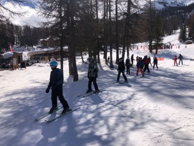 On a ensuite été déjeuner, puis on a été chausser nos chaussures de ski et on a été prendre les télécabines. On s’est entraîné sur du slalom et après on fait des bosses. Le midi on a pique-niqué à la station de ski. L’après-midi, on a repris les télécabines et on a descendu une piste bleue et verte.