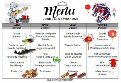 Découvrez les menus de la cantine pour le mois de Janvier 2026 :